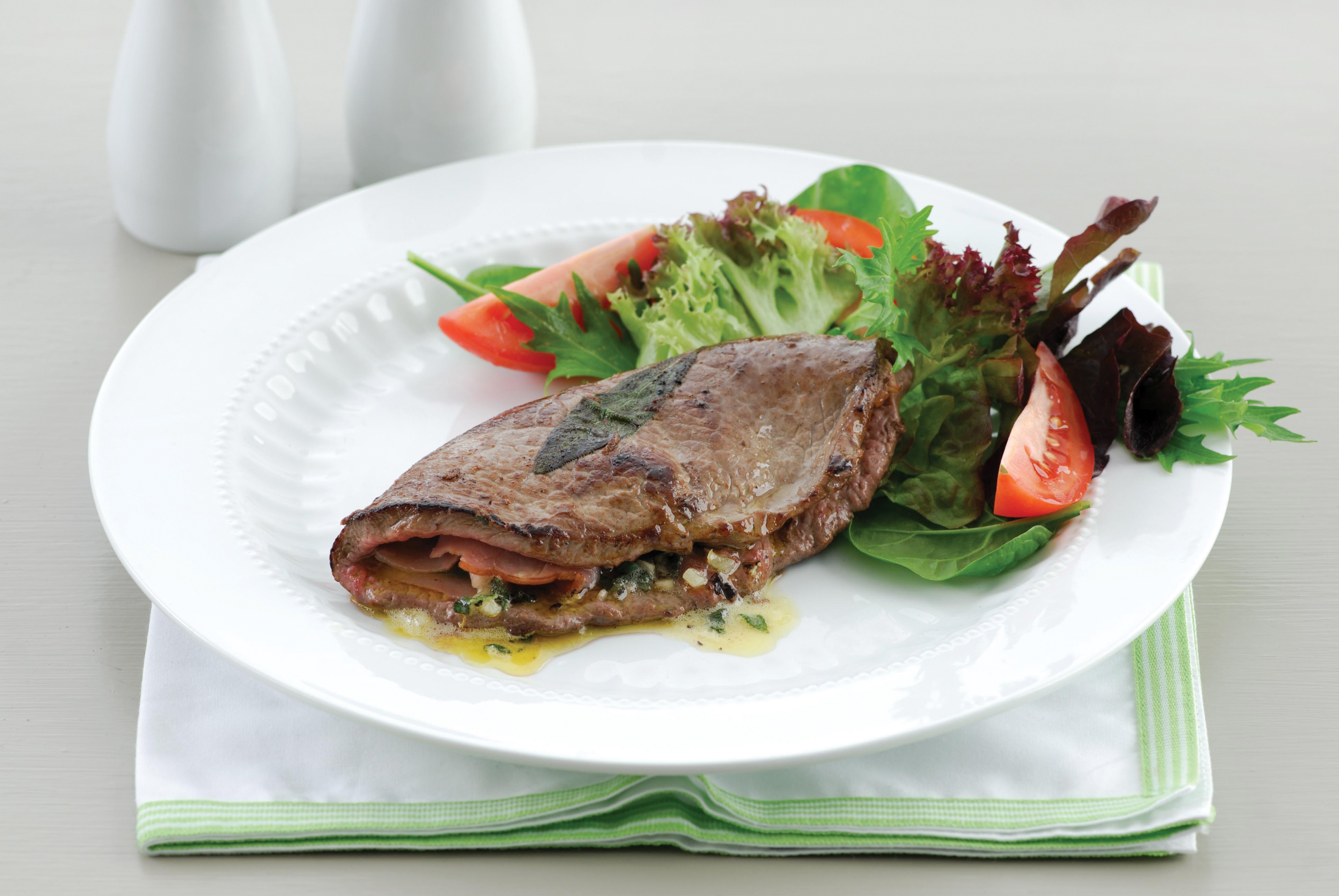 Tender slices of beef seasoned with sage and pan fried quickly for easy entertaining.